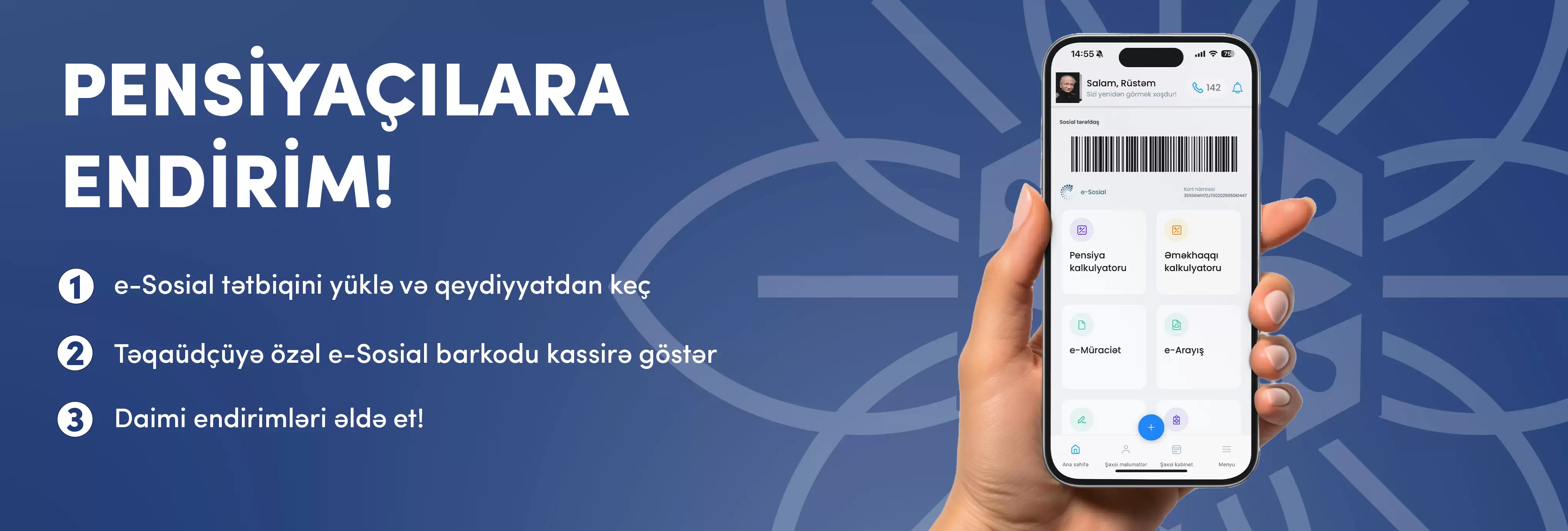 Ödəniş zamanı e-Sosial tətbiqindəki barkodu kassirə göstərin